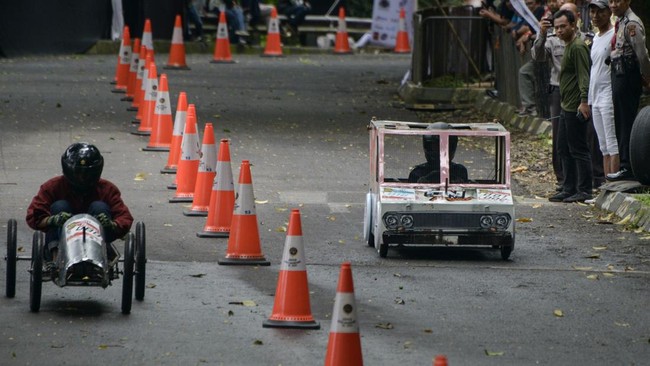 Bandung - Lomba Kereta Peti Sabun digelar di Bandung. Lomba ini sebagai bentuk ajang pengembangan kreativitas dan inovasi. Yuk lihat.