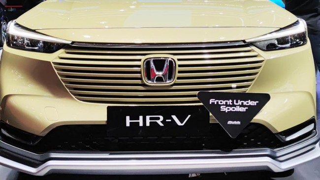 Honda HR-V Modulo Edition tersedia dalam varian SE dengan dua pilihan warna eksklusif, Platinum White Pearl dan Sand Khaki Pearl. Kalau dari depan, terdapat front under spoiler. Foto: Honda