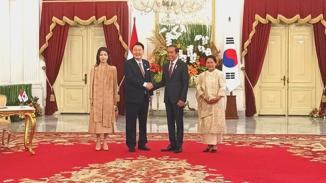 "Terima kasih atas kehadirannya di Indonesia dan pertemuan ini merupakan wujud komitmen kuat kemitraan strategis komprehensif kita dan terima kasih Yang Mulia atas dukungannya terhadap keketuaan Indonesia di ASEAN dan sentralitas ASEAN untuk menjaga kawasan Indo-Pasific," kata Jokowi dalam pertemuan bilateral dengan Yoon Suk Yeol di Istana Merdeka, Jakarta, Jumat (8/9/2023).