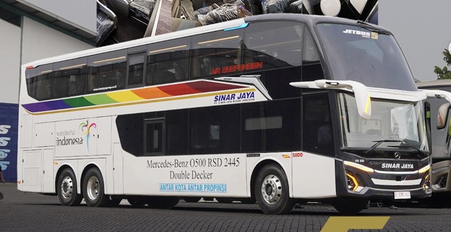Seperti dilihat detikOto di akun Instagram @adiputro_official, bus tingkat PO Sinar Jaya ini menggunakan bodi terbaru Adiputro Jetbus5 SDD (Super Double Decker). Bus ini menggunakan sasis premium, Mercedes-Benz O500 RSD 2445.