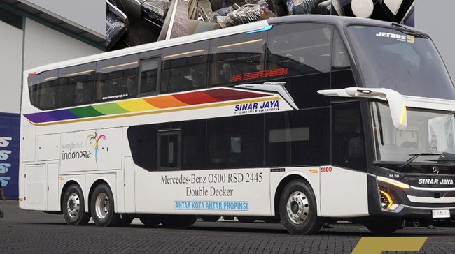 Dilihat detikOto di akun Instagram @adiputro_official, bus tingkat PO Sinar Jaya ini menggunakan bodi terbaru, Adiputro Jetbus5 SDD (Super Double Decker). Bus ini memakai menggunakan sasis premium, Mercedes-Benz O500 RSD 2445.
