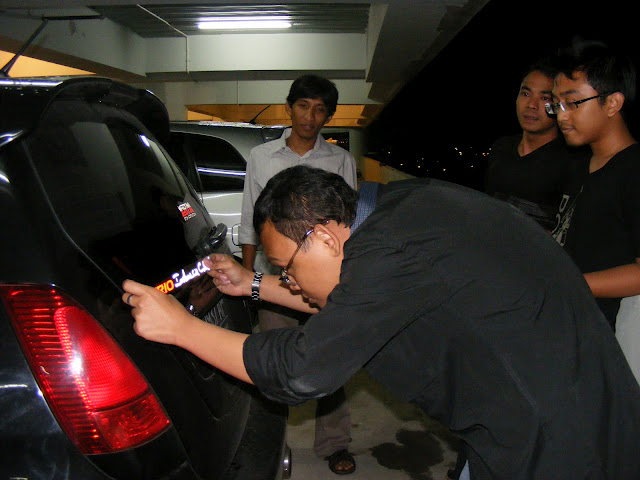 Selain penempelan stiker, dilakukan juga pengecekan kondisi mobil secara bersama dan berbagi tips trik seputar Suzuki Aerio dan Baleno Next-G.