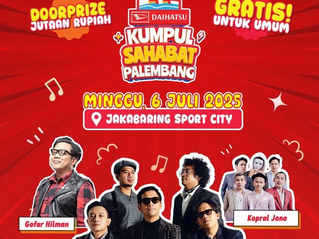 Setelah menggelar acara perdana tahun 2025 ini di Alun-alun Tigaraksa, Kabupaten Tangerang, kini gelaran Daihatsu Kumpul Sahabat digelar di Kota Palembang. Daihatsu siap hadir temani keseruan akhir pekan masyarakat Palembang lewat aneka hiburan yang dapat dinikmati bersama keluarga. Sebagai sarana rekreasi akhir pekan, acara ini juga menjadi momen untuk saling terhubung dan mengenal lebih dekat antar para pelanggan setia, komunitas, hingga masyarakat setempat.