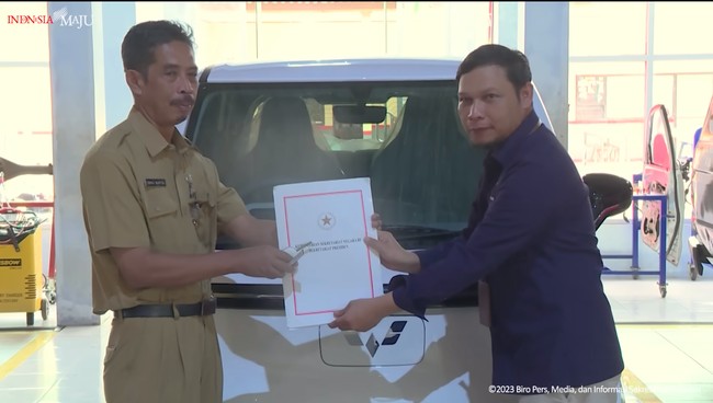 SMKN 1 Kedungwuni baru saja menerima 1 unit Wuling Air ev dari Presiden Joko Widodo. Segini harga Wuling Air ev pemberian Jokowi itu.