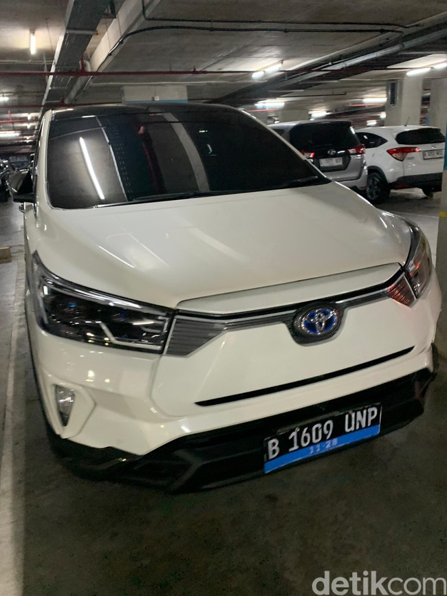 Tak seperti mobil yang belum diluncurkan lainnya, Kijang Innova listrik itu tak ditutup oleh kamuflase. Innova listrik itu bahkan sudah dilengkapi dengan pelat nomor dengan lis biru yang menandakan mobil listrik.