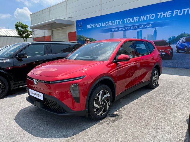 Mobil MPV 7 seater menjadi salah satu model yang dipamerkan ke media saat kunjungan ke pabrik VinFast di Đình Vũ, Hải Phòng, Vietnam. Mobil ini berwarna merah, punya emblem bertuliskan Limo Green di bagian belakangnya.