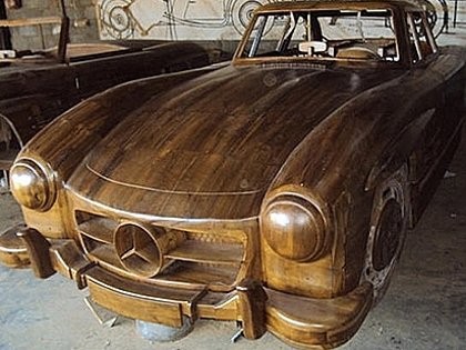 Mobil kayu yang memiliki ukuran layaknya Mercedes-Benz 300SL lansiran 1955 itu tentu saja tidak memiliki sistem kelistrikan. Dan karena dibuat seluruhnya dari bahan kayu, ban yang menyokong tubuhnya juga tidak perlu diisi angin.