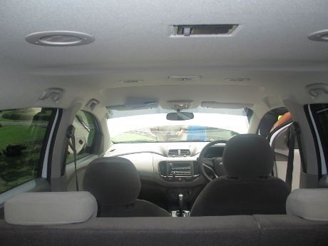 Satu mobil Spin dihuni oleh 4 orang awak media. 2 duduk di depan termasuk pengemudi dan 2 orang lagi duduk di baris kedua.