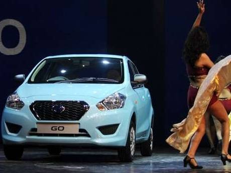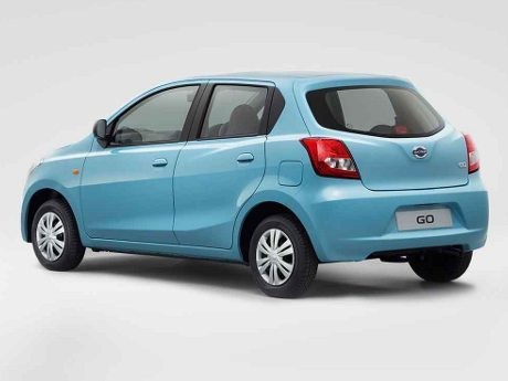 Ada logo Datsun di depan dan belakang serta tulisan GO di kanan belakang.