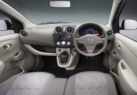 Di sisi lain, handle pintu mirip mirip sekali dengan Nissan March. Secara keseluruhan, dashboard Datsun cukup simple. Tombol-tombol pengatur audio, pendingin ruangan juga tak terlalu rumit.