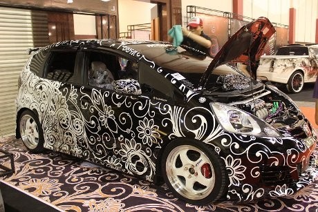 Mahasiswa jurusan Ekonomi Management ini mengaku kalau konsep modifikasi luar itu street racingnya seperti pada bodi kit, pelek, penggunaan karbon sedangkan modif lokalnya itu penambahan motif batik pada bagian interior dan eksteriornya.