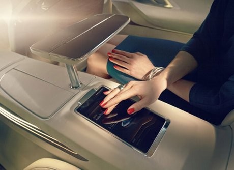 Sementara di kursi belakang,Β penumpang diberi tablet berukuran besar yang bisa mengontrol fitur seperti audio dan lain-lain.