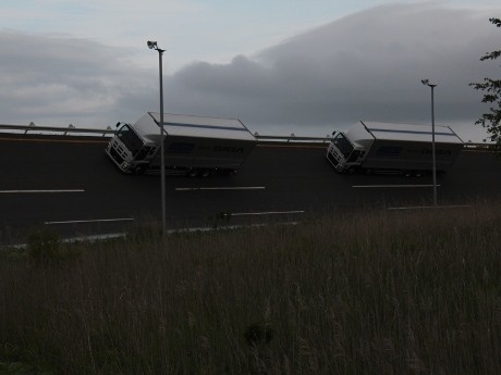Setelah 120 km/jam, saat melewati tikungan dengan sudut kemiringan 42 derajat, detikOto menembus 140 km/jam dan rasanya benar-benar menantang karena dengan kecepatan yang cukup tinggi, truk itu berjalan di kemiringan 42 derajat. Rasanya luar biasa karena takut truk itu terguling.
