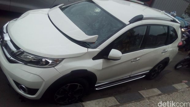 Dijelaskan Jodie, Honda BR-V warna putih ini terjatuh saat diangkut truk trailer yang membawa sejumlah mobil baru di Jalan Boulevard Raya, Kelapa Gading, tepatnya di depan Mal of Indonesia (MoI).