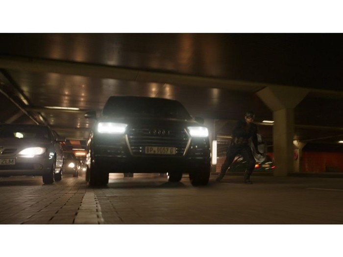 Captain America yang diperankan oleh Chris Evans, mengendarai Audi SQ7 terbaru, sedangkanΒ Iron Man (Robert Downey Jr.) menggunakan lagi mobil super Audi R8 V10 plus Coupe.