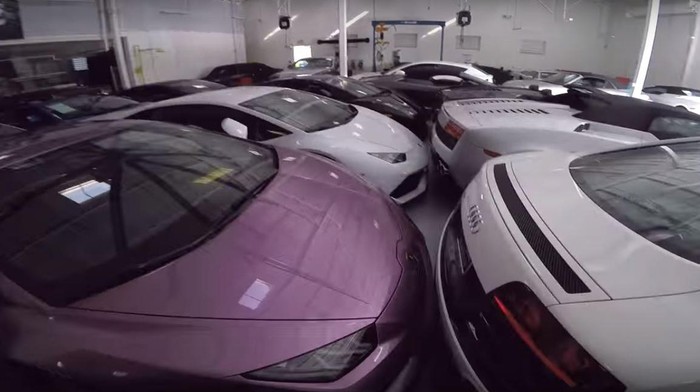 Mobil-mobil yang diparkir ini termasuk model Huracan dibalut cat berwarna ungu terkenal dari perayaan ke-30 tahun Diablo pasangan dari Countach retro. Selain Lamborghini, mobil super lain yang juga diparkir berdempetan yaitu Ferrari FF dan Audi R8.