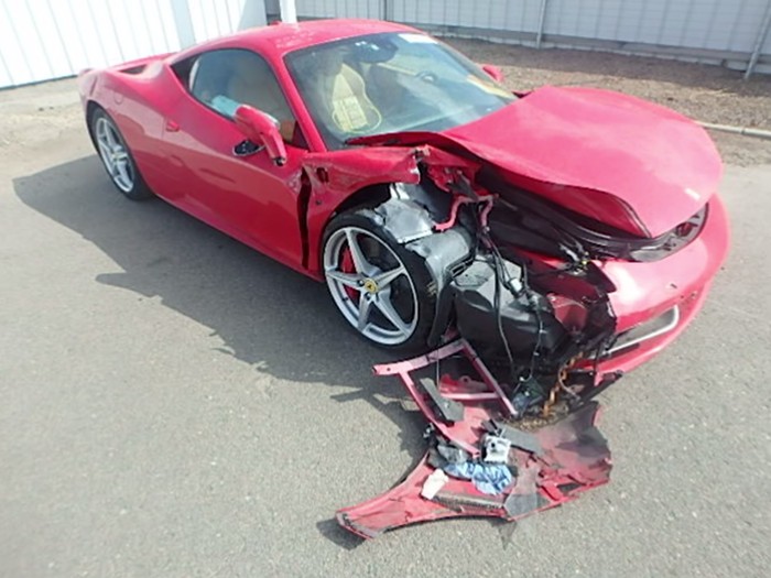 Ferrari 458 Italia sewaannya ini menabrak pembatas jalan yang cukup merusak bagian samping depan kanan. Beruntung tidak ada yang terluka akibat kejadian ini.