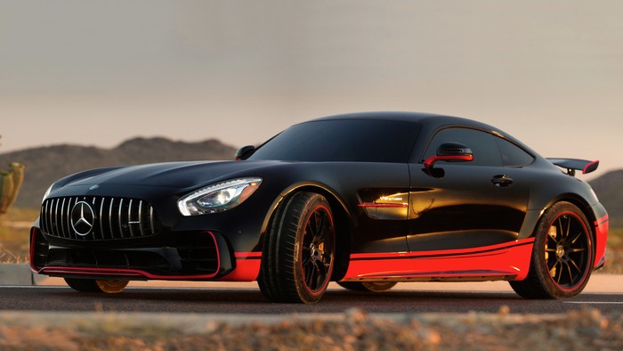 Mercedes-AMG GT R yang dimodifikasi Bay untuk keperluan film akan menggunakan 'baju' berwarna hitam dengan aksen garis berwarna merah. Tak lupa GT R juga akan tampil dengan pelek baru.