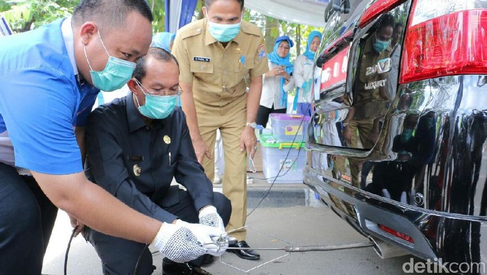 Tidak ketinggalan Wali Kota Palembang Harnojoyo ikut serta melakukan uji kendaraan dinas miliknya yang dibuka di Jalan Demang Lebar Daun. Terpantau hasilnya mobil tersebut lulus uji emisi dengan kondisi baik.