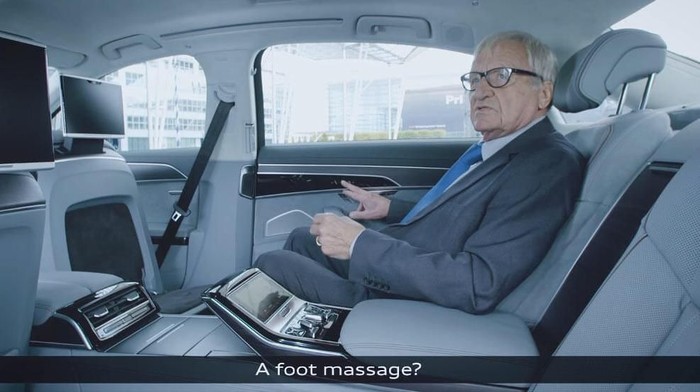 Dalam video promosi terbarunya, Audi ingin menunjukkan kepada para penumpang atau pengendara mobil bahwa segala kegiatan dapat dilakukan ketika berada diperut kendaraan termasuk menikmati layanan pijat. Dengan mengatur kontrol panel yang berada di kursi bagian belakang sedan tersebut (terkait kekuatan pijatnya), Otolovers dapat menikmati pijat dari bagian punggung hingga kaki.