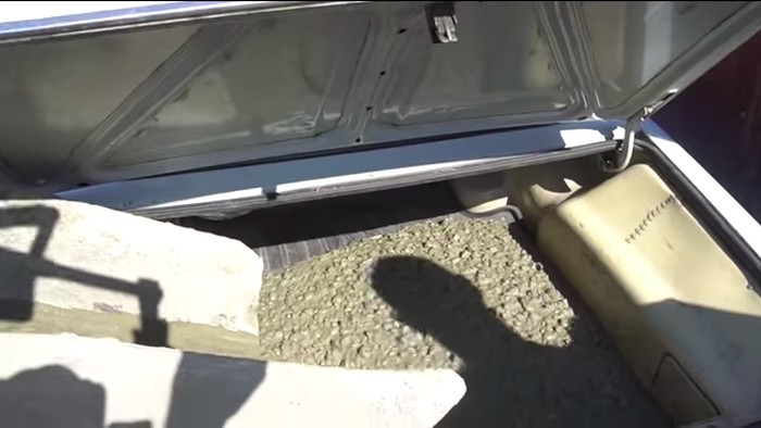 Channel YouTube Garage 54 ENG mengunggah video percobaan mobil yang interiornya diisi beton. Tak tanggung-tanggung, mobil tersebut diisi beton dengan berat total 5 ton.