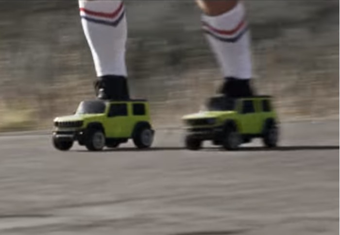 Hal itu digambarkan dalam sebuah iklan yang ditayangkan Suzuki Australia di YouTube. Iklan itu menunjukkan Suzuki Jimny mungil dijadikan sepatu roda dan melaju di medan berat.