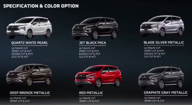 Mitsubishi New Xpander hadir dengan New Front Bumper Design, New T-Shape Headlight with LED, New Rear Design, New T-Shape LED Tail Light, dan Side Sill Garnish, Electric Switch Tail Gate Door Handle, serta pelek baru New 17" Two Tone Alloy Wheel.