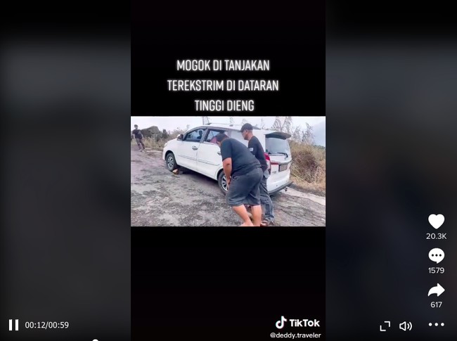 Momen itu diabadikan oleh akun TikTok seorang Travel Influencer @deddy.traveler. Pria dengan nama lengkap Deddy Sulaimawan itu bilang, Toyota Innova tersebut mogok di tanjakan terekstrem di Dataran Tinggi Dieng.