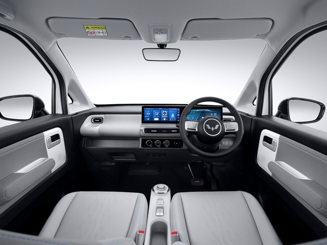 Kemudian bagian kabin Wuling Air ev mengedepankan nuansa kenyamanan dengan desain panel minimalis pada door trim serta konfigurasi 4-seater yang lega dengan pengaturan 50:50 pada bangku baris kedua untuk memberikan akses lebih. Aspek kenyamanannya juga ditunjang dengan aplikasi Synthetic Leather Seat di seluruh bangku.