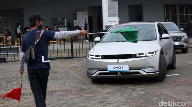 "Sopo gelem (siapa yang mau)," kata Ganjar usai keluar dari Hyundai Ioniq 5 seperti dilihat detikcom, Jumat (26/8/2022).