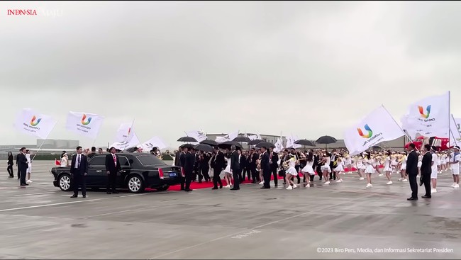 Presiden Joko Widodo telah tiba di Chengdu, China. Setibanya Jokowi di Bandara Internasional Tianfu itu, langsung dijemput mobil China mewah.