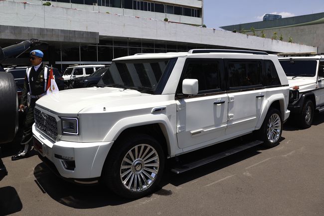 Ada yang beda dalam iring-iringan Prabowo Subianto setelah dilantik jadi Presiden Republik Indonesia di Gedung MPR/DPR RI menuju Istana Kepresidenan, Minggu (20/10/2024). Prabowo menggunakan mobil tangguh buatan Indonesia.