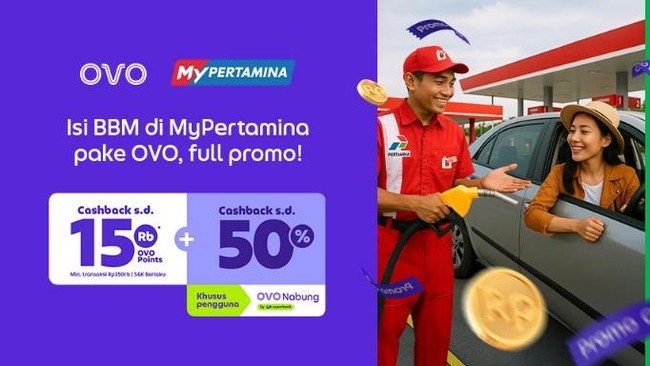 Setiap pengisian BBM di MyPertamina pakai OVO, masyarakat bisa mendapatkan cashback s/d 15.000 OVO Points (transaksi min. Rp350rb) dan bonus buat pengguna baru OVO Nabung cashback s/d 50.000 OVO Points. Berikut syarat dan ketentuannya!