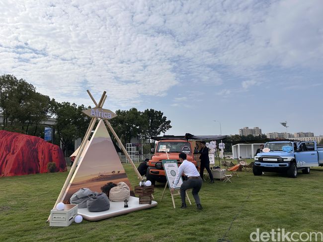 Chery juga menampilkan V23 lainnya yang juga cocok untuk camping. Sama seperti V23 berwarna biru muda, mobil ini juga dipasang awning tenda.