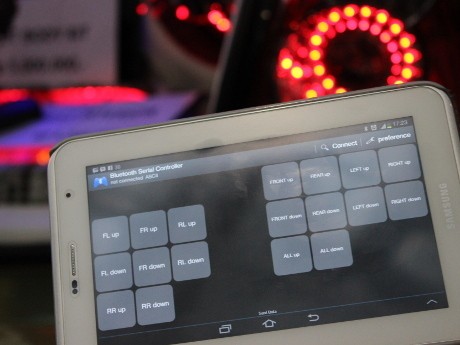 Dengan aplikasi yang berbasis Android, untuk membuka pintu, atau mengganti ketinggian suspensi tinggal menyentuh layar tablet saja.