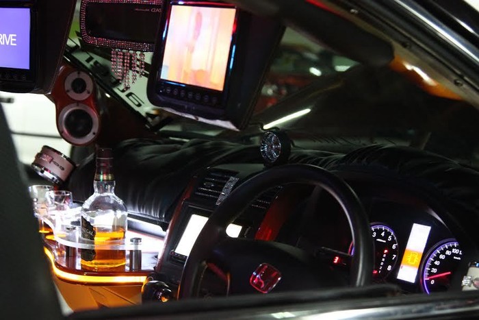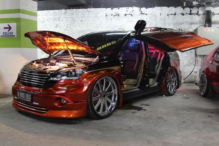 Lampu-lampu 3d, custom minibar, custom plafon, custom lantai, hingga custom pilar. Ada juga tabung 1 universal air, 8 selenoid, 2 kompresor vi air, remote wireless airsus 9 channel, hingga custom doortrim depan dan tengah.