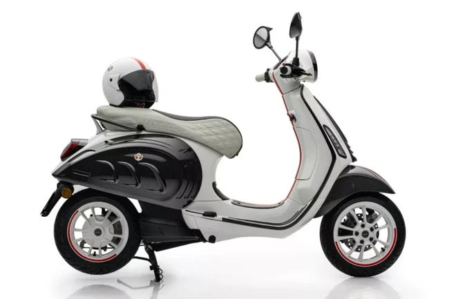 Vespa Elettrica yang dikustomisasi oleh Mansory ini dinamakan Mansory Vespa Elettrica Monaco Edition. Motor skutik ramah lingkungan ini menghadirkan nuansa putih yang elegan pada bagian bodi depan, dek, jok, juga velg.