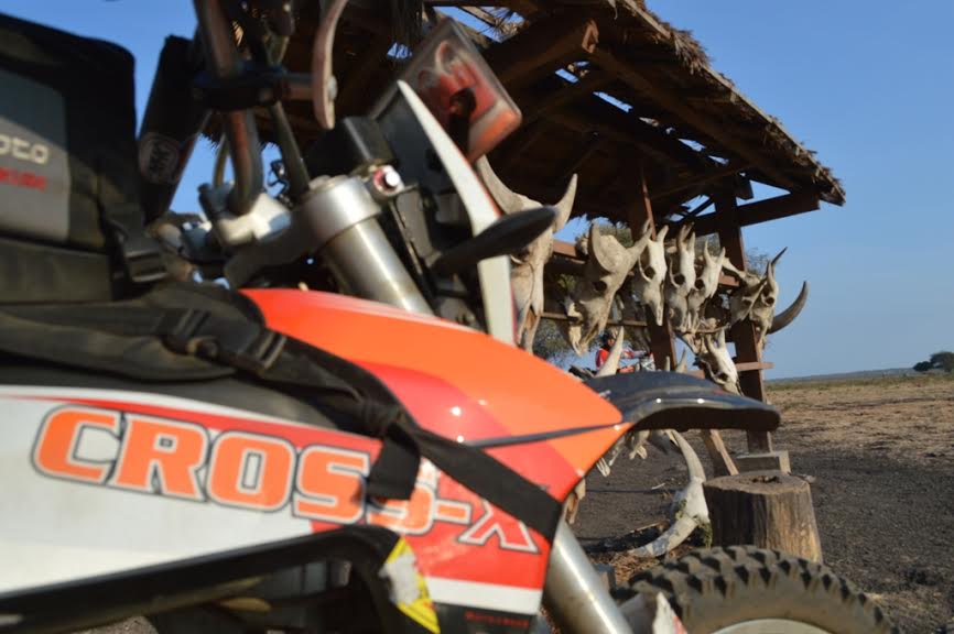 Cuaca terik di savana, tak banyak tampak hijaunya tanaman dan pepohonan, kering. Satu bangunan kayu ikonik yang berisi tulang banteng tampak semakin menegaskan aroma terik yang tengah menaungi taman nasional Baluran.