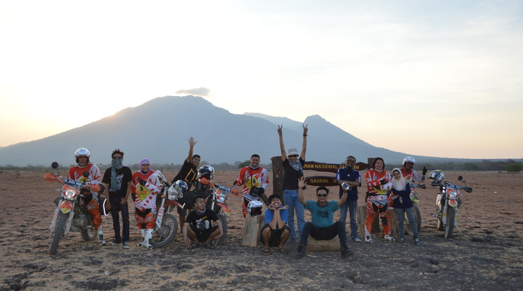 Tiba sore hari tampak matahari mulai mendekati perbukitan jelang tenggelam. Taman Nasional Baluran memiliki kontur jalan offroad sejak dari pintu pagar pertama, sebuah area bermain yang cocok untuk sebuah VIAR Cross X 200.