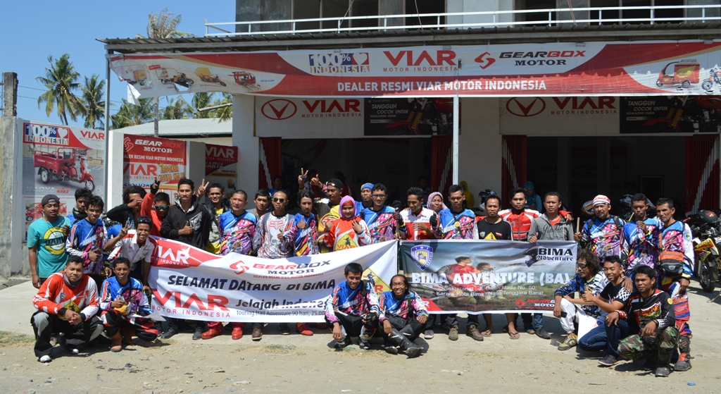 Puluhan sepeda motor dari generasi penggaruk tanah alias trail berkumpul bersama dan mengiringi perjalanan tim VIAR Jelajah Indonesia dari kota Dompu menuju Bima.