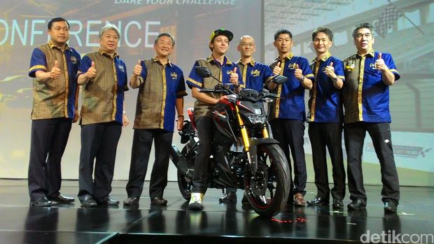 "Hari ini merupakan sebuah kehormatan dan saat yang sangat membahagiakan untuk mengenalkan produk baru Yamaha Xabre bersama Valentino Rossi," kata Presiden Direktur Yamaha Indonesia Minoru Morimoto dalam sambutannya di The Mulia Resort & Villas, Nusa Dua, Bali, Selasa (26/1/2016).