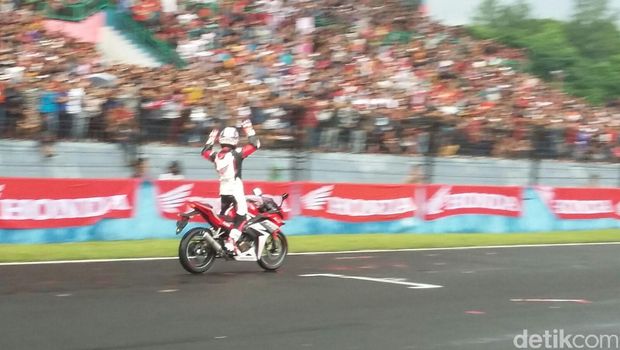 Keduanya menggunakan All New Honda CBR150R warna livery warna livery Honda Racing Red. Mereka pun menyapa para penggemar yang telah menunggu dengan setia di Sirkuit Sentul.
