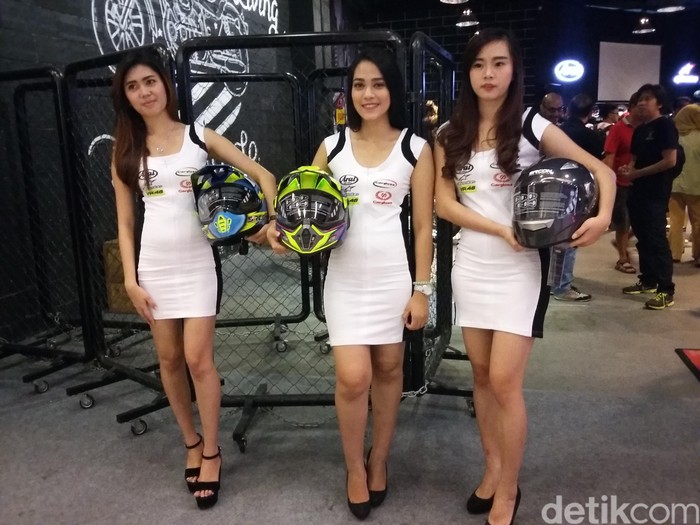 Salah satu booth yang ramai dikunjungi yaitu Juragan Motor. Sejumlah merek helm dijual dengan harga diskon yang menarik perhatian mulai dari Zeus, Shark, hingga Shoei.