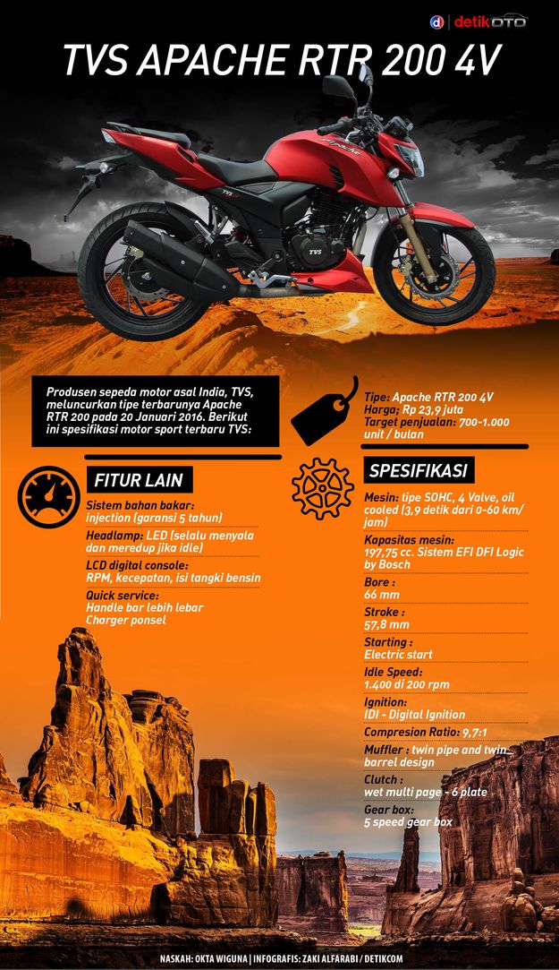 "Kami yakin TVS Apache RTR 200 akan memikat banyak pengunjung di Jakarta Fair 2016 yang berlangsung 37 hari dan ditargetkan dapat meraih 200 DO," ungkap V. Thiyagarajan, Presiden Direktur TVS Motor Indonesia.