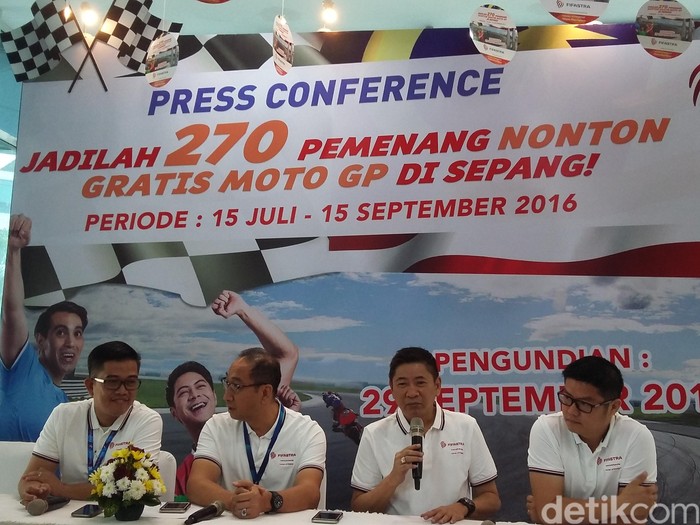 "Program ini sangat istimewa karena sebanyak 270 paket nonton MotoGP dan jalan-jalan di Malaysia akan kami bagikan khusus untuk konsumen FIFAstra," ujar Djap Tet Fa, Direktur Pemasaran FIFGroup, Selasa (19/7/2016).