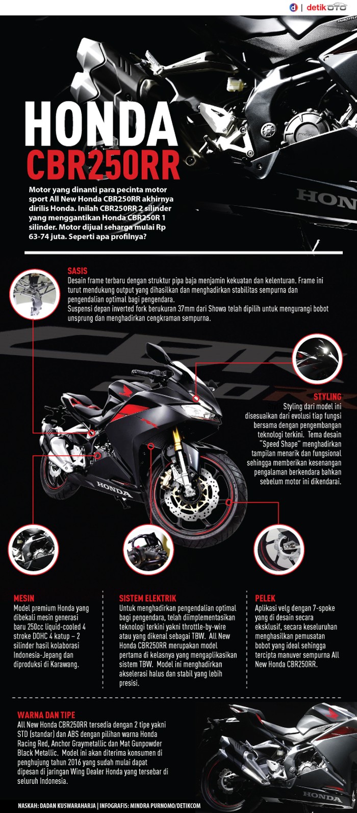 Jakarta - Motor yang dinanti para pecinta motor sport All New Honda CBR250RR akhirnya dirilis Honda. Inilah CBR250RR 2 silinder yang menggantikan Honda CBR250R 1 silinder. Motor dijual seharga mulai Rp 63-74 juta (ddn/ddn)