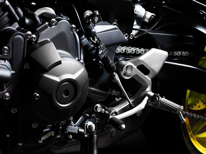 Mesin ini dilengkapi dengan forged piston dan offset silinder. Teknologi crossplane khusus akan membuat MT-09 dengan torsi yang lebih besar dan linear.