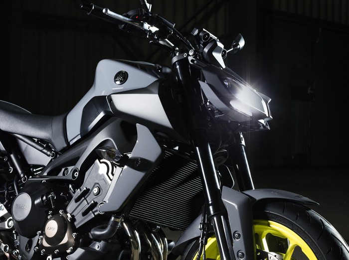 Meski desainnya masih mendapatkan sentuhan MT-10, wajah radikal gaya terlihat pada MT-09 dengan memiliki twin-eye LED agresif yang memperlihatkan kekuatan yang kompak dan ringan.