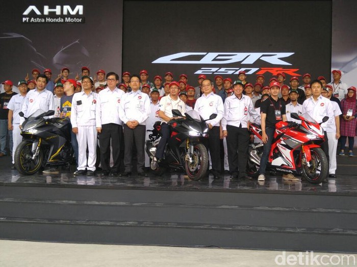 "Akhirnya kita mulai memproduksi model yang paling ditunggu-tunggu, All New Honda CBR250RR. Mulai dari sini, Indonesia. Saya ingin menyampaikan penghargaan yang sebesar-sebesarnya untuk para konsumen, setelah diperkenalkan sekitar 2.700 konsumen yang menginginkannya," ujar Presdir PT Astra Honda Motor, Toshiyuki Inuma, di Karawang Jawa Barat, Kamis (3/11/2016).