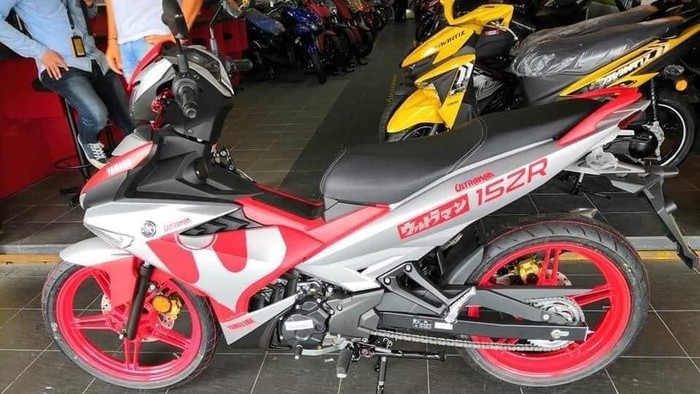 Kembaran Yamaha MX King tersebut mendapat pilihan livery berlabur warna khas Ultraman, dengan kombinasi warna silver dan merah yang merata mulai dari bodi sampai pelek.
